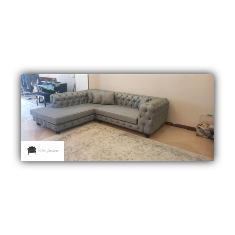مبل ال چستر مکعبی تشک دوبل تمام پارچه و تمام چرم